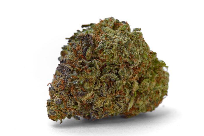 • Appearance: Dense buds covered in trichomes, with colors ranging from deep green to purple and bright orange hairs
